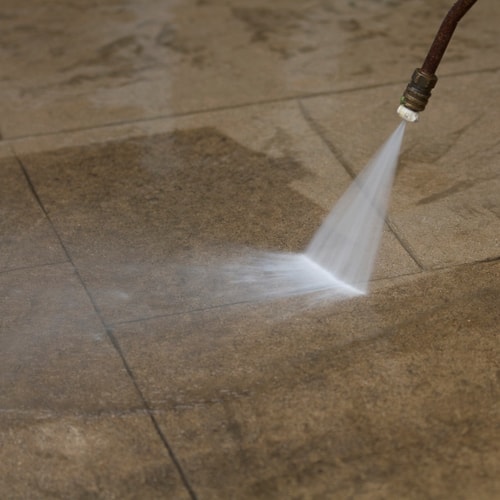 Next, power wash on low to moderate pressure to remove all the cleaning product. Let the concrete thoroughly dry.